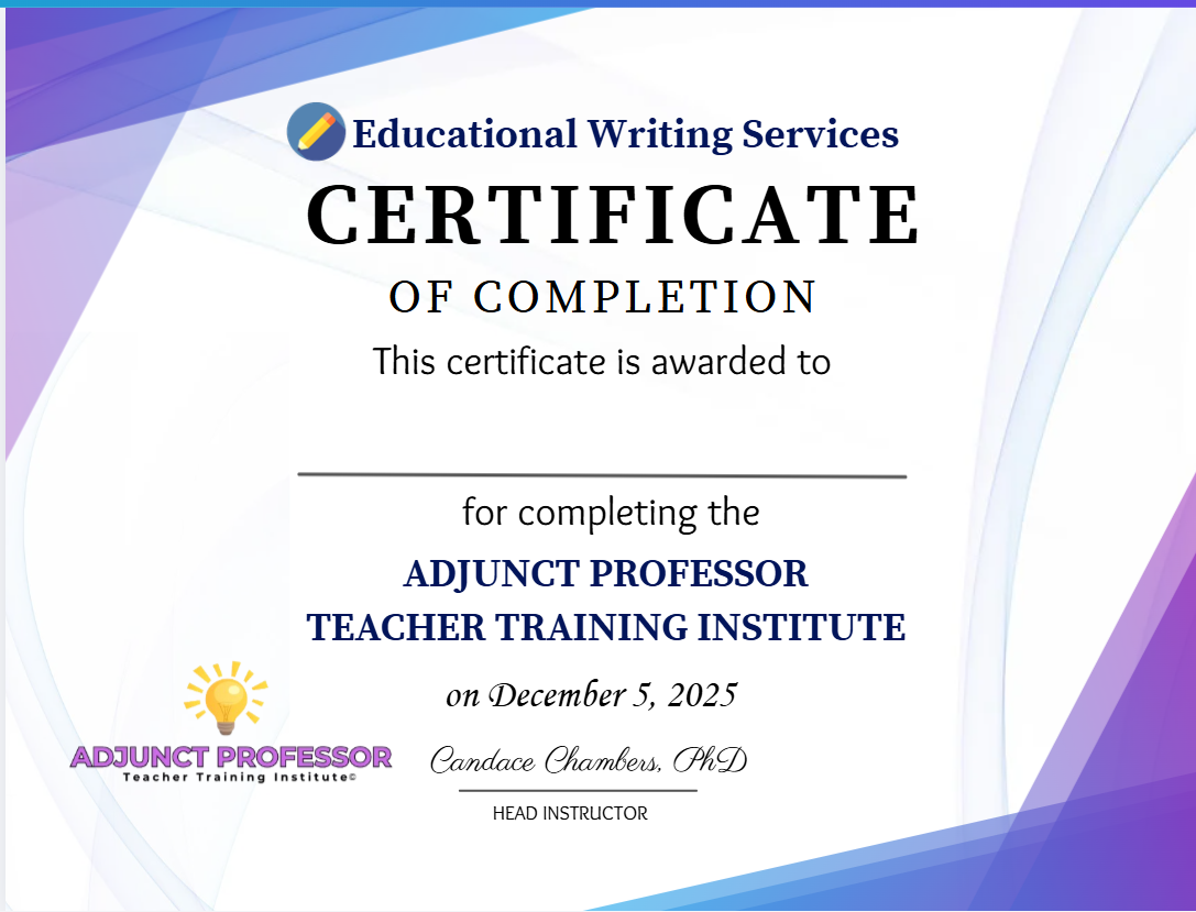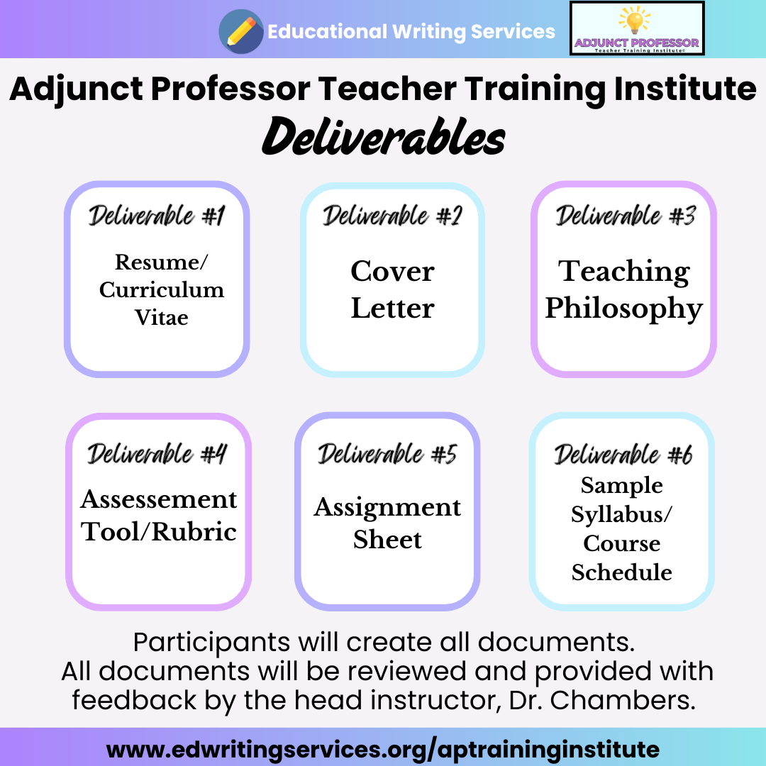 The Adjunct Professor Teacher Training Institute is designed to train aspiring and current adjunct professors on pedagogical methods.