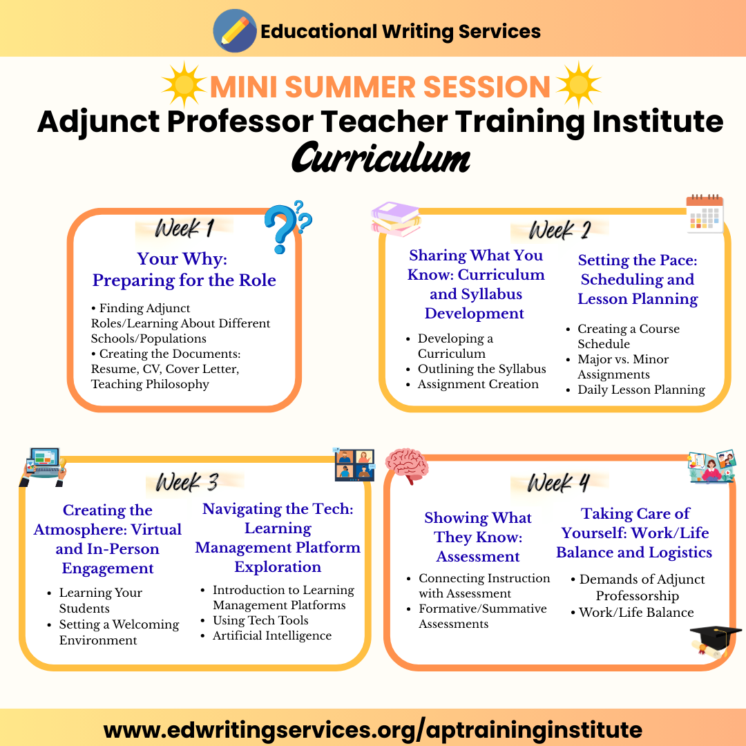 Interested in teaching as an Adjunct Professor but have little to no teaching experience on the college level? Or do you want to spruce up your teaching methods? You’re in the right place!
